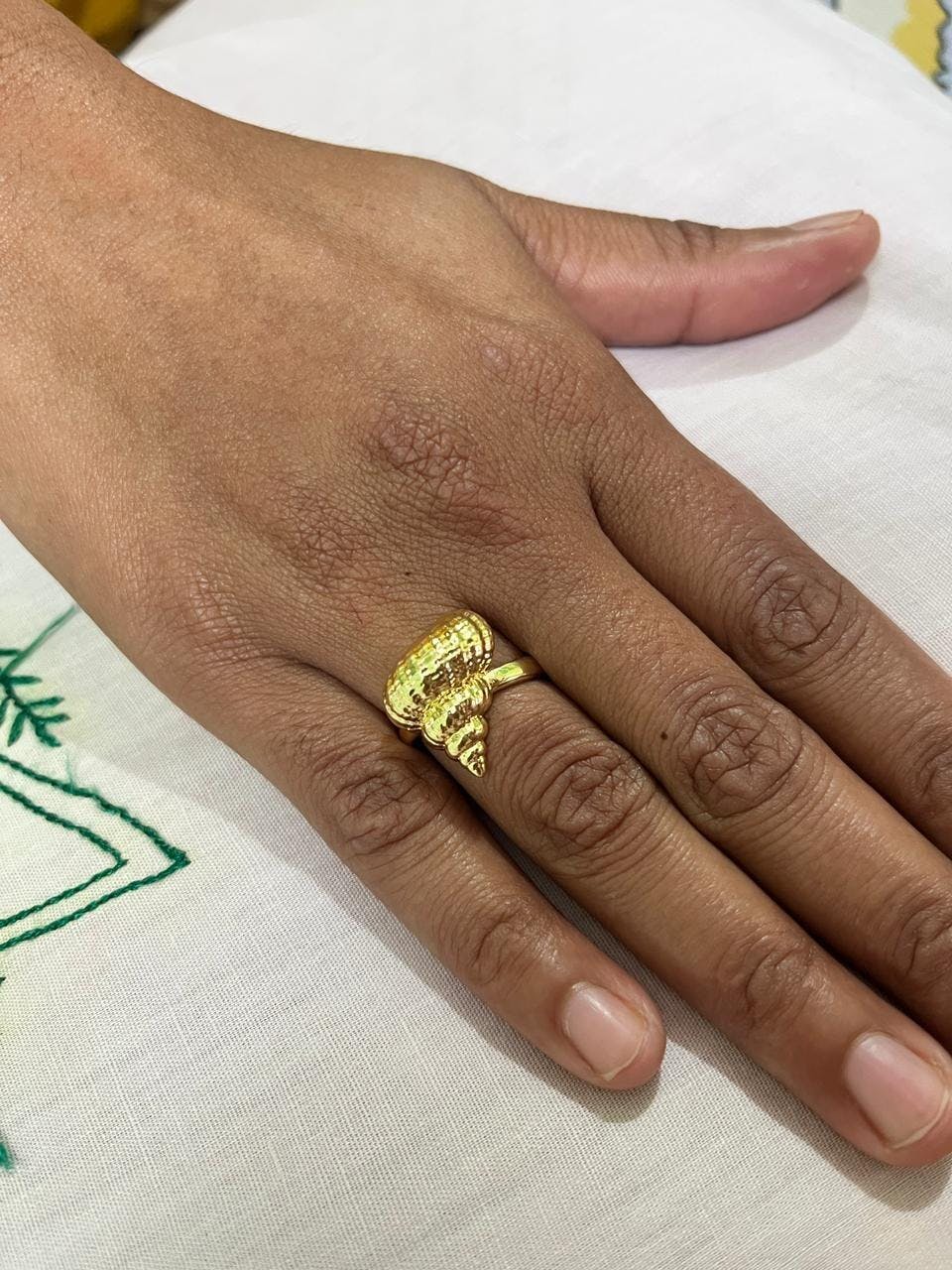 Base Material: Brass; Plating: 18K Gold; Features: Anti-Tarnish, Skin-Friendly; Design: Textured Seashell/Conch; Size: Adjustable